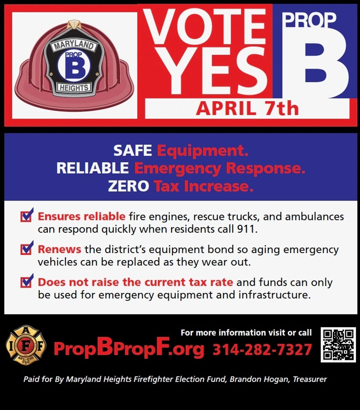Proposition B is a bond renewal that allows the Fire Protection District to continue replacing and maintaining fire trucks, ambulances, and critical